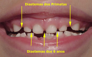 O espaço entre os Caninos e Laterais decíduos superiores e Primeiros Molares e caninos decíduos inferiores têm o nome de “Diastema dos Primatas”. É herança antropológica, remanescente da evolução das espécies, em que os ancestrais do Homo Sapiens tinham estes espaços onde se alojava o sobre passe oclusal dos caninos que eram muito grandes.